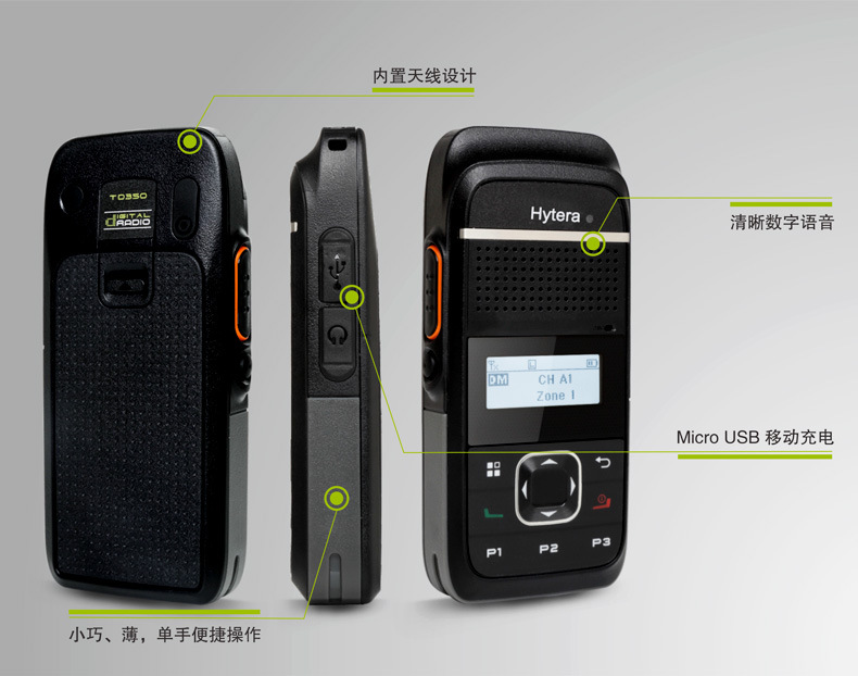 海能达最新推出TD350商业数字对讲机,面向高端酒店、会所、商超等商业用户。TD350拥有全新的外观设计:内置天线,超薄设计,通用 USB移动充电,极具商务、时尚美感,同时小巧的机身使其可单手操作,提升工作效率。